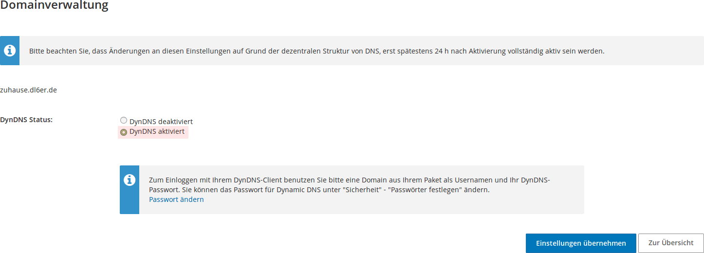 In the following, we give an example of how to set up ddclient using the German Internet hosting provider Strato. First, you need to create a subdomain. Then you need to enable DynDNS for this domain: