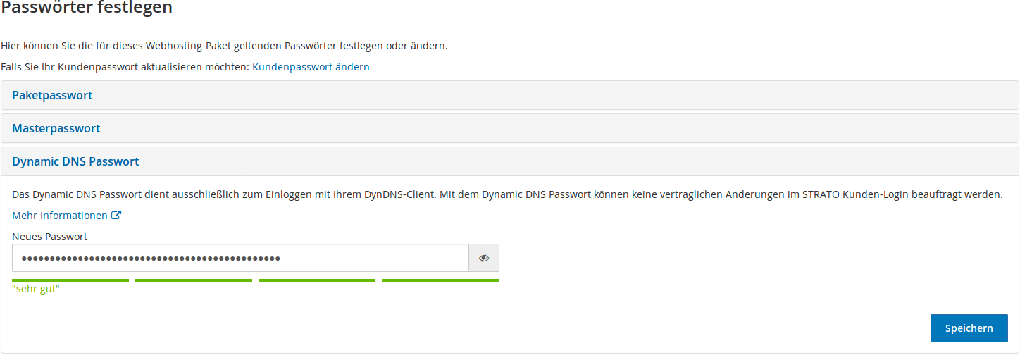 where you replace strato-login-name by your Strato login name (most likely your domain name, like maxmustermann.de), password1234 by the password you configured above (see the third screenshot), and meine.domain.de by the subdomain you created and enabled dynamic DNS for.